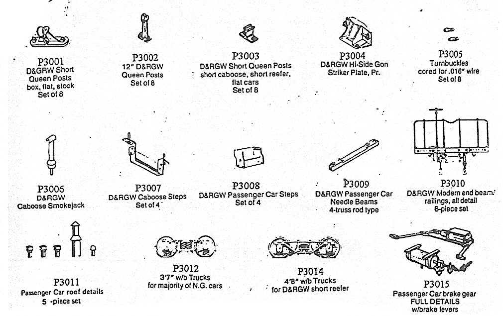 P3003 | 3” short reefer queenposts | D&RGW | 8 / 9.00 |