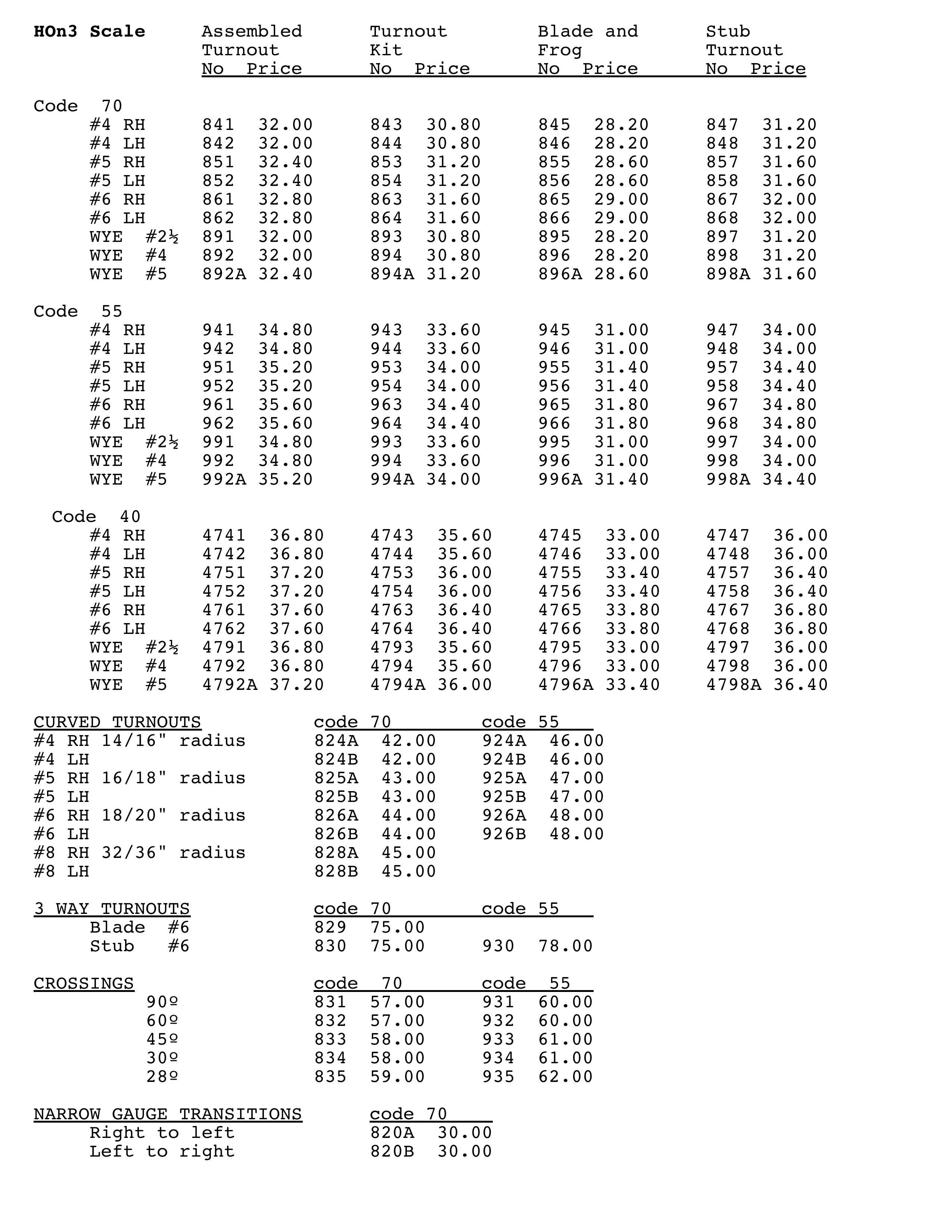 PSC | 31787 | Archbar 3'7 | Plastic | Most D&RGW | 7.00 |