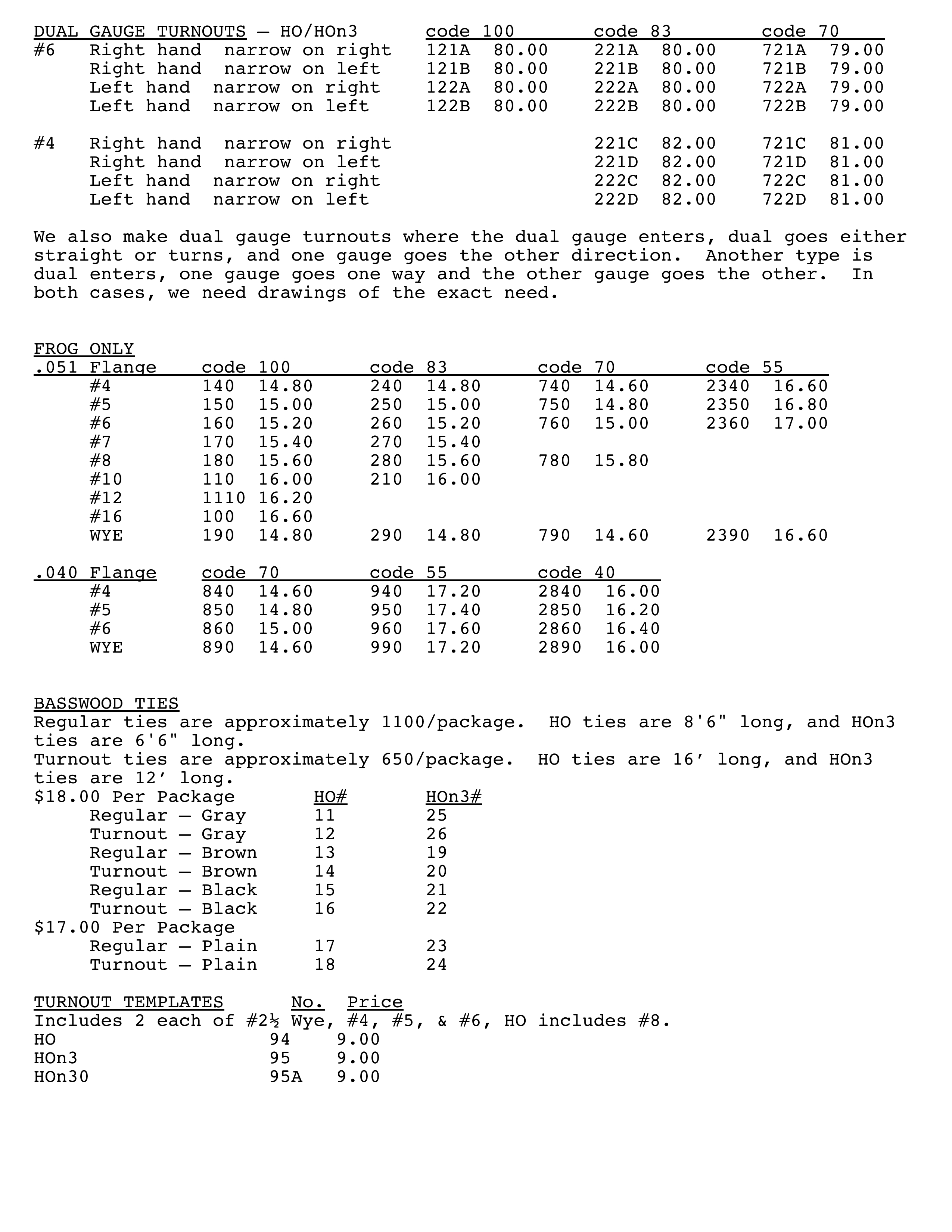 Our kits consist of pre cut basswood frame, siding and roof with styrene, brass or white metal detail parts, including full brake gear. Kits do not include trucks or couplers. Some H0n30 items include trucks